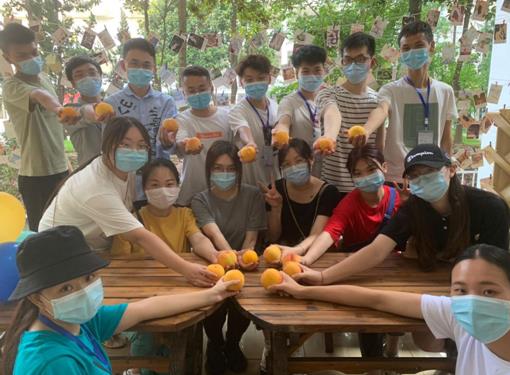 图为医药学院2020届毕业生手握"桃礼"合影留念。(通讯员 肖亚慧摄)