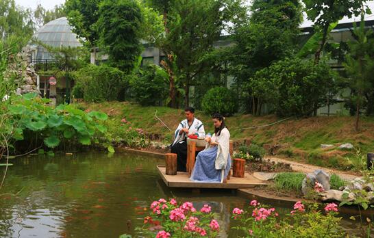 图为校植物园内汉服表演