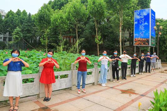 图为10名毕业班辅导员“比心”欢迎毕业生回“家”